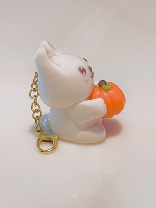 Polymer Clay Sleepy Bunny With a Pumpkin Charm