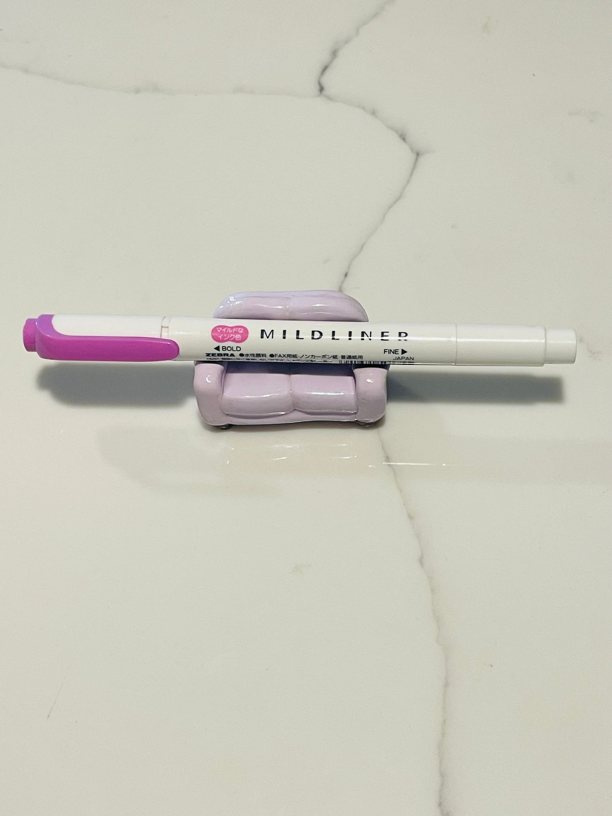 The most cutest pen holder you will see! This purple couch pen holder is perfect to display your favorite pen on and looks beautiful on its own as a desk ornament :)