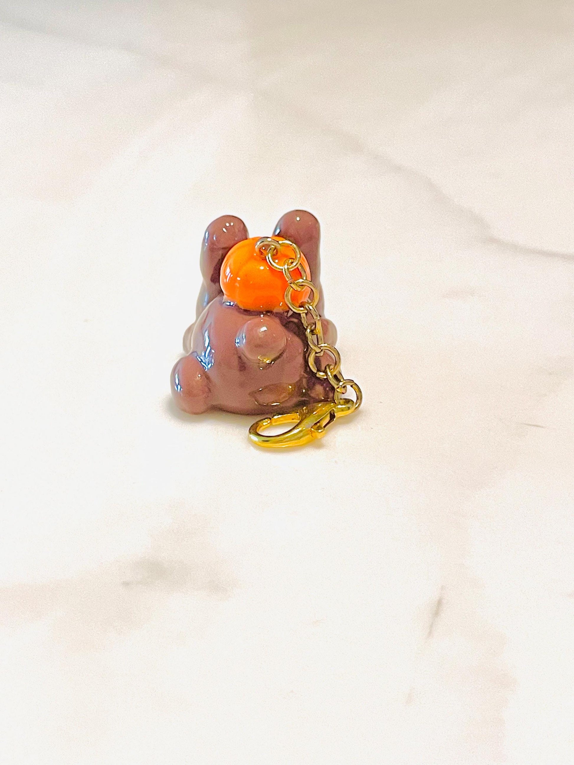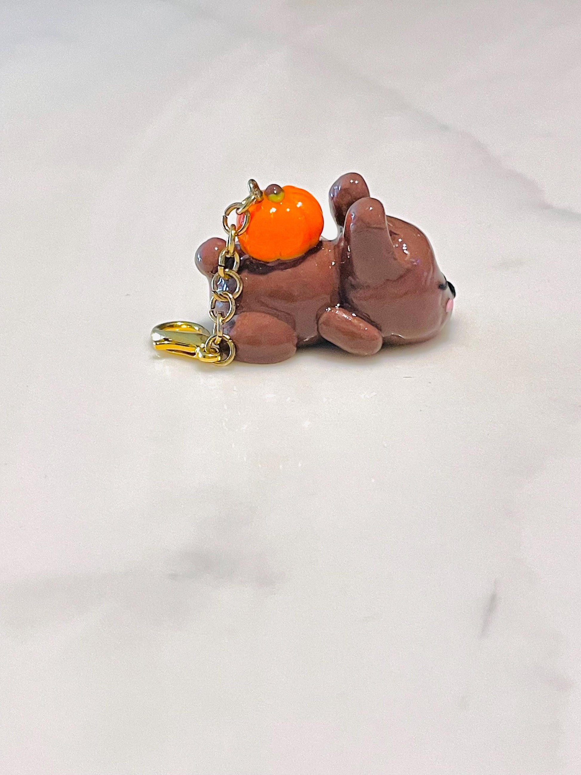 Polymer Clay Sleepy Bunny With a Pumpkin Charm